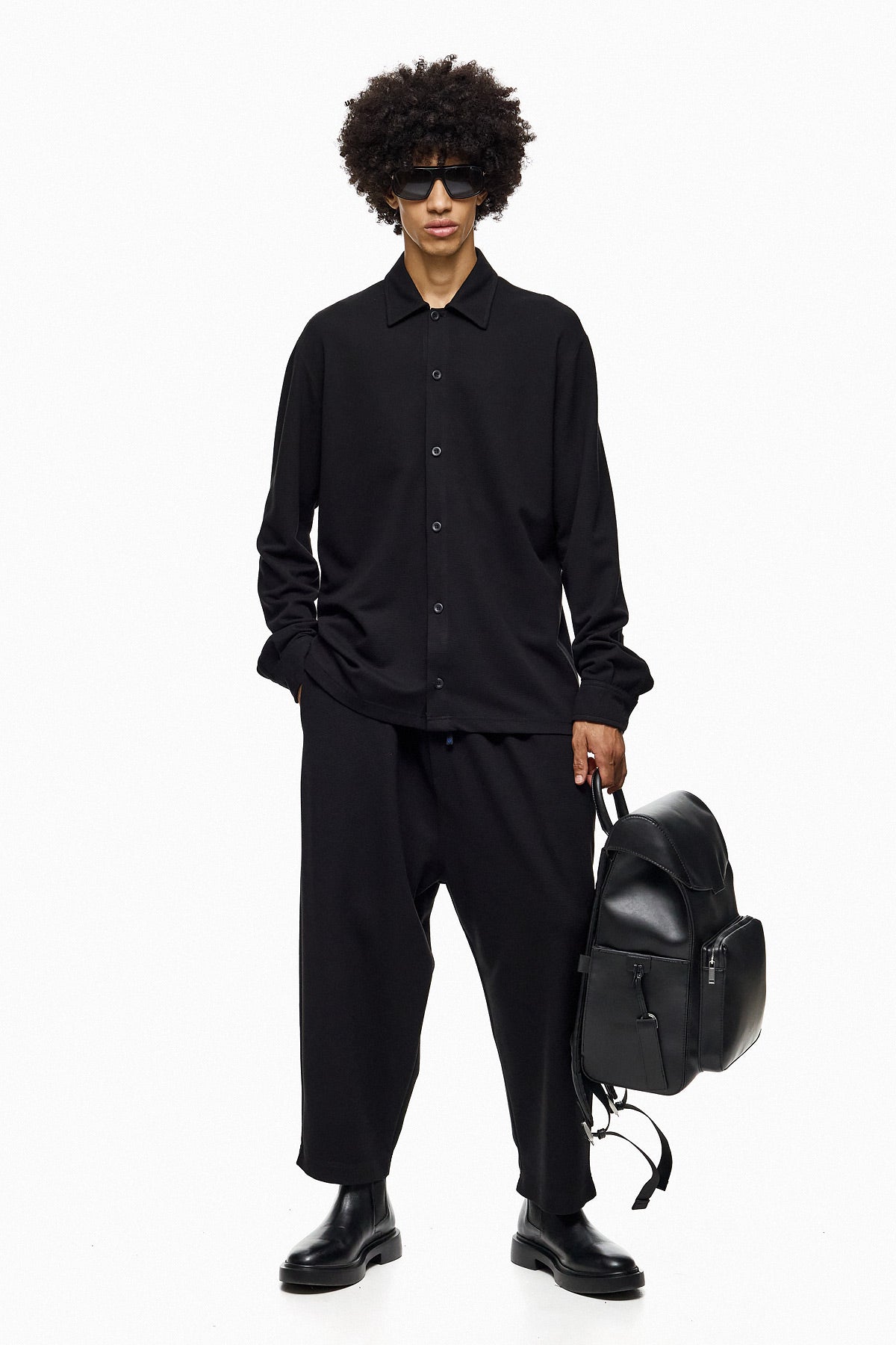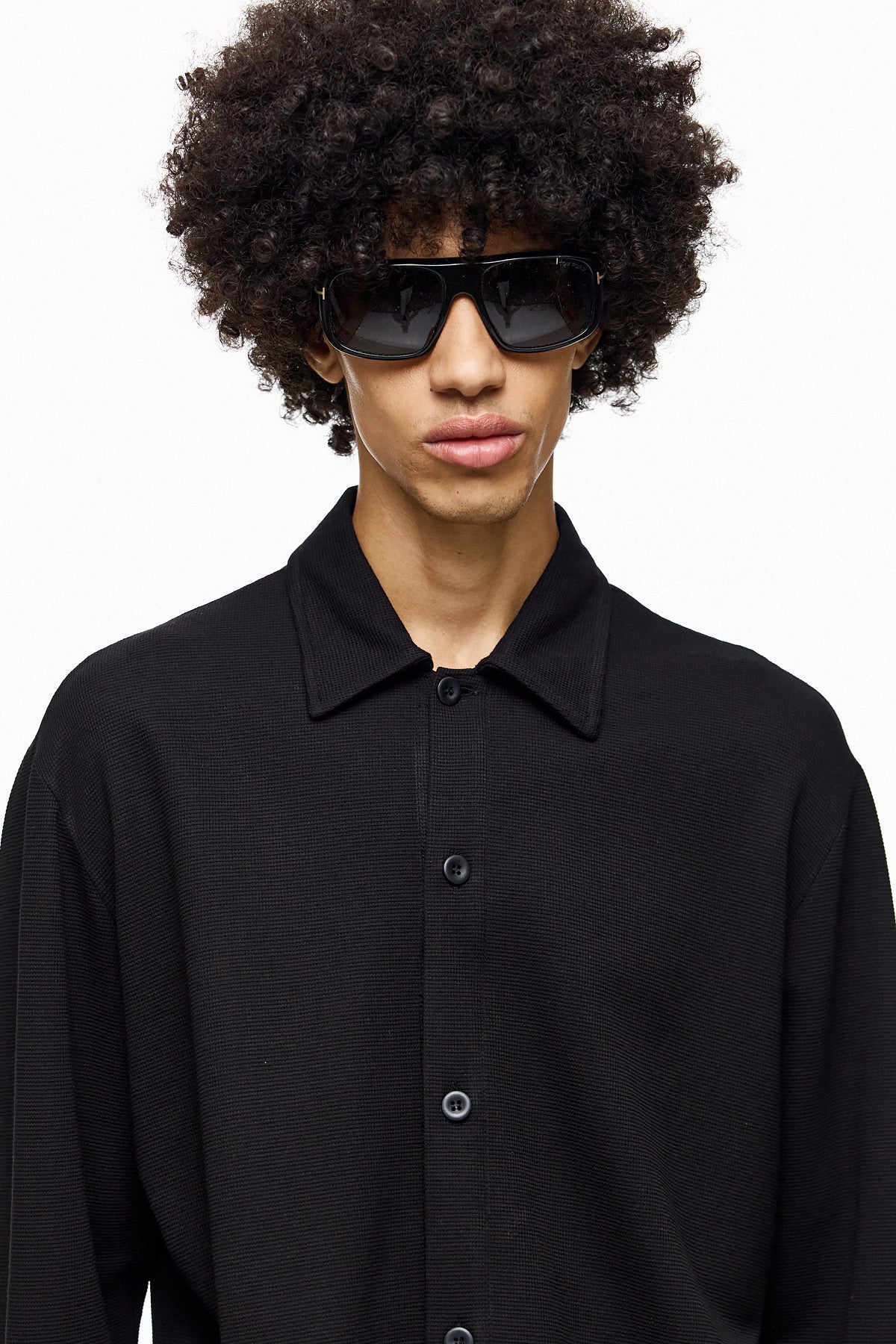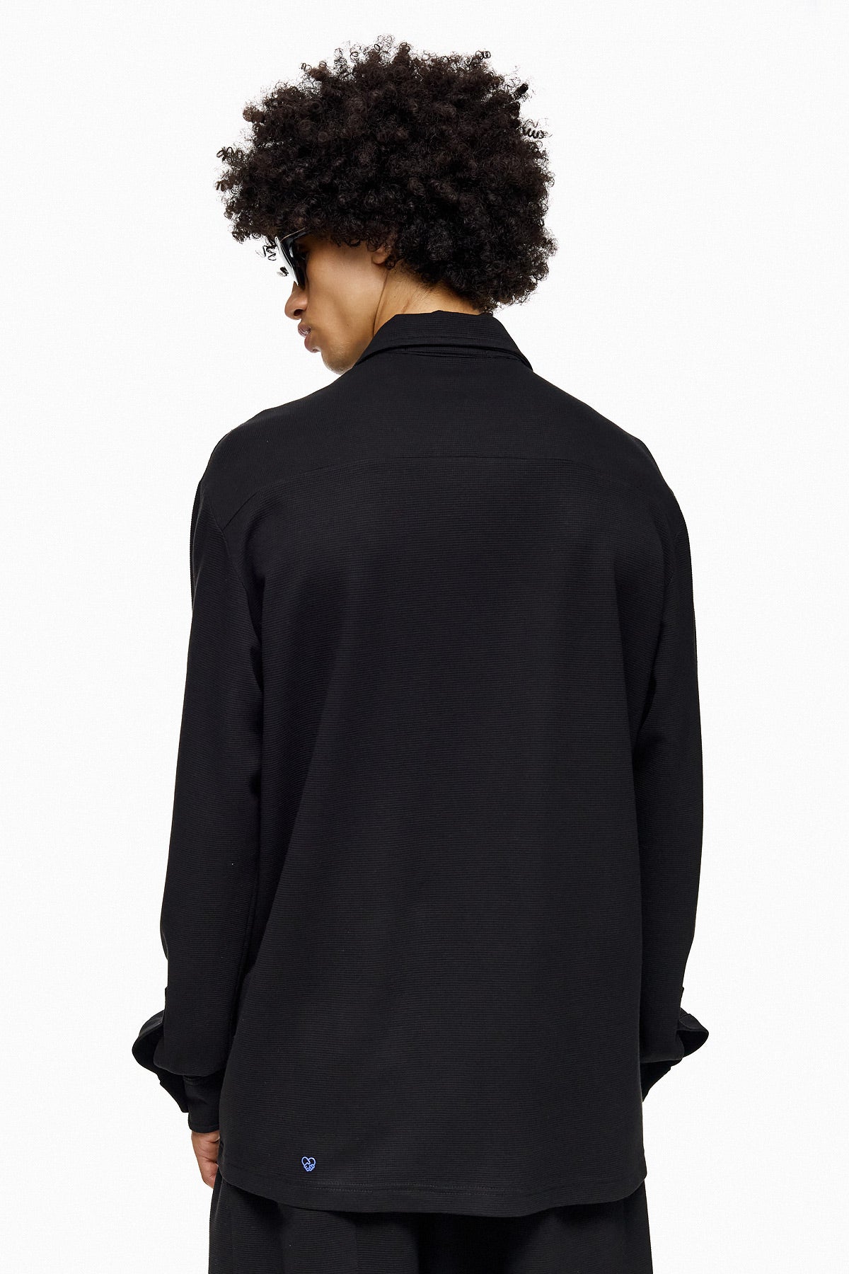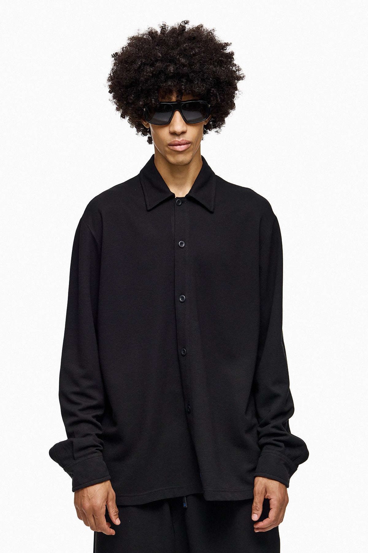 A clean, versatile shirt designed for a modern wardrobe. This oversized black button-up blends casual ease with tailored minimalism, making it perfect for layering or wearing as a statement piece.