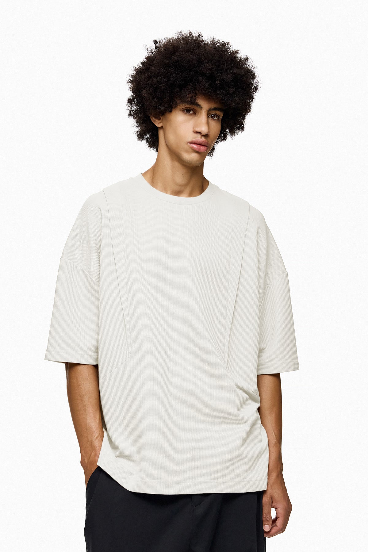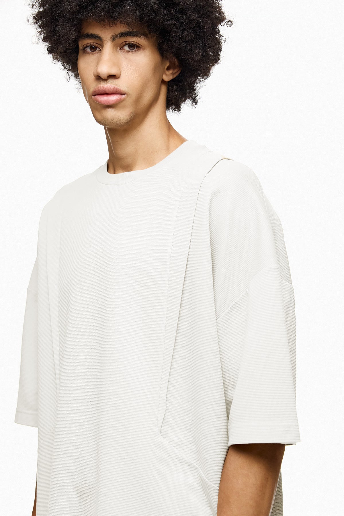 Effortless, versatile, and designed for everyday comfort. This oversized T-shirt in off white is crafted with a structured yet breathable fabric, giving it a refined drape that works from streetwear to smart-casual styling